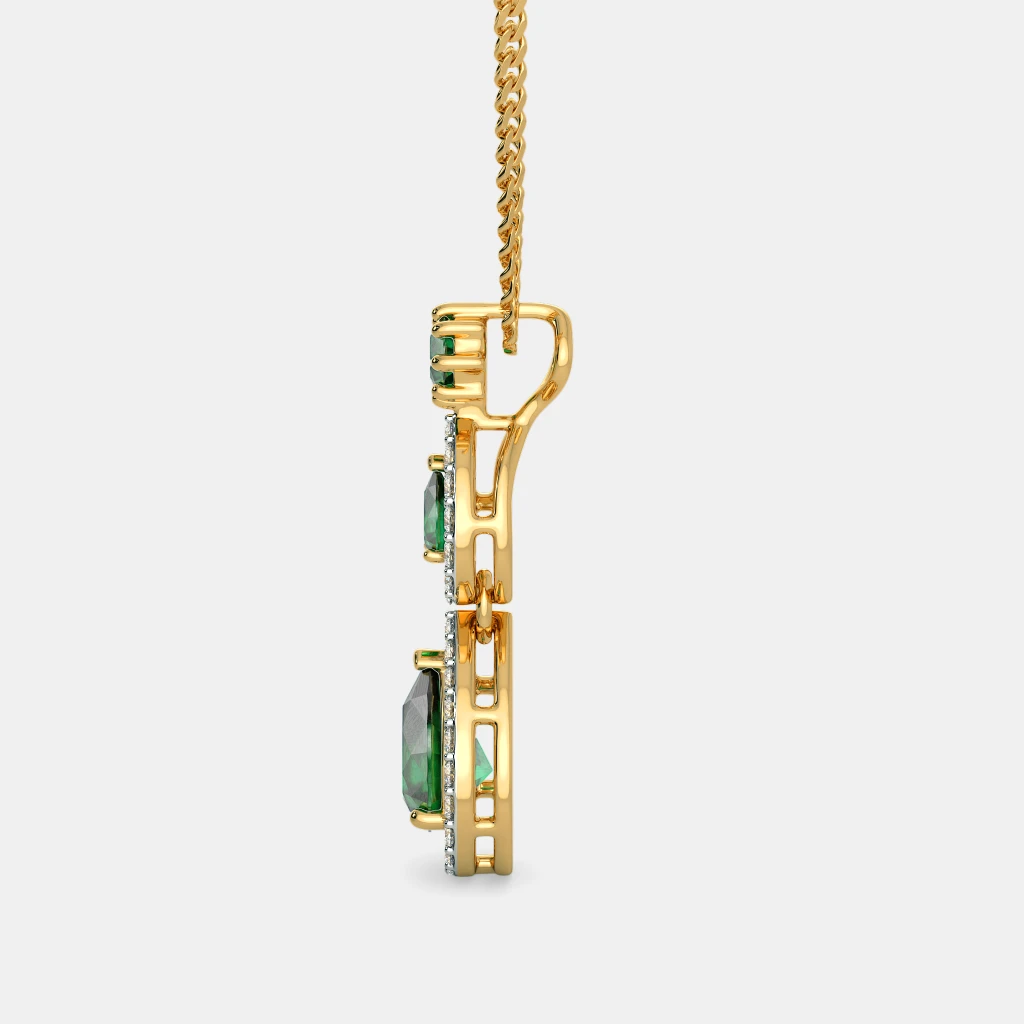 Diamond And Simulant Emerald Pendant In 18Kt Yellow Gold (1.725 gram) with Diamonds (0.2640 Ct)